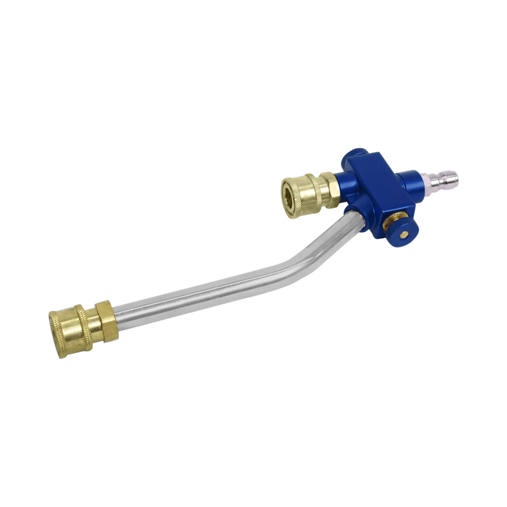 A VÁLVULA BYPASS 2 EM 1 é um acessório de excelente qualidade que possibilita agilidade e praticidade na lavagem automotiva. Composto por uma lança em aço inoxidável e um corpo de válvula em alumínio, seu sistema de acoplamento do tipo engate rápido permite alternância eficiente entre o sistema de snow foam e jato d’água.