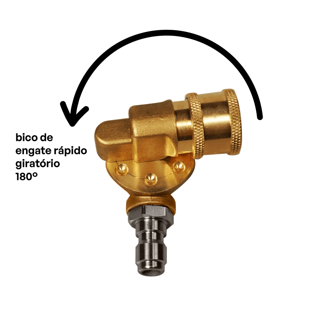 O Acoplador giratório de 180 graus para lavadora de alta pressão possui entrada e saída de 1/4 polegadas com pressão máxima de 4500PSI. Ele permite a utilização de até 3 ângulos diferentes, e deve ser utilizado justamente para os bicos de alta pressão, facilitando e melhorando a limpeza do veículo como um todo.